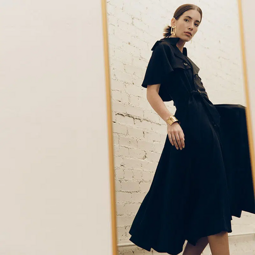 Eve & Max’s newest collection, Namaloom (meaning “unknown” in Urdu), features a print of black text with paint markings, and 24-karat gold leaf on tea-stained paper from Ambreen’s 2017-2020 Say My Name series. It explores striking contrasts between despair and hope, darkness and splendor. As Eve & Max debuts Namaloom with a permanent residency at the Grange Hall boutique in Dallas, we chat with Ambreen about the deeper undertones of her paintings, how she views the world and why she loves the detailed processes her work requires.